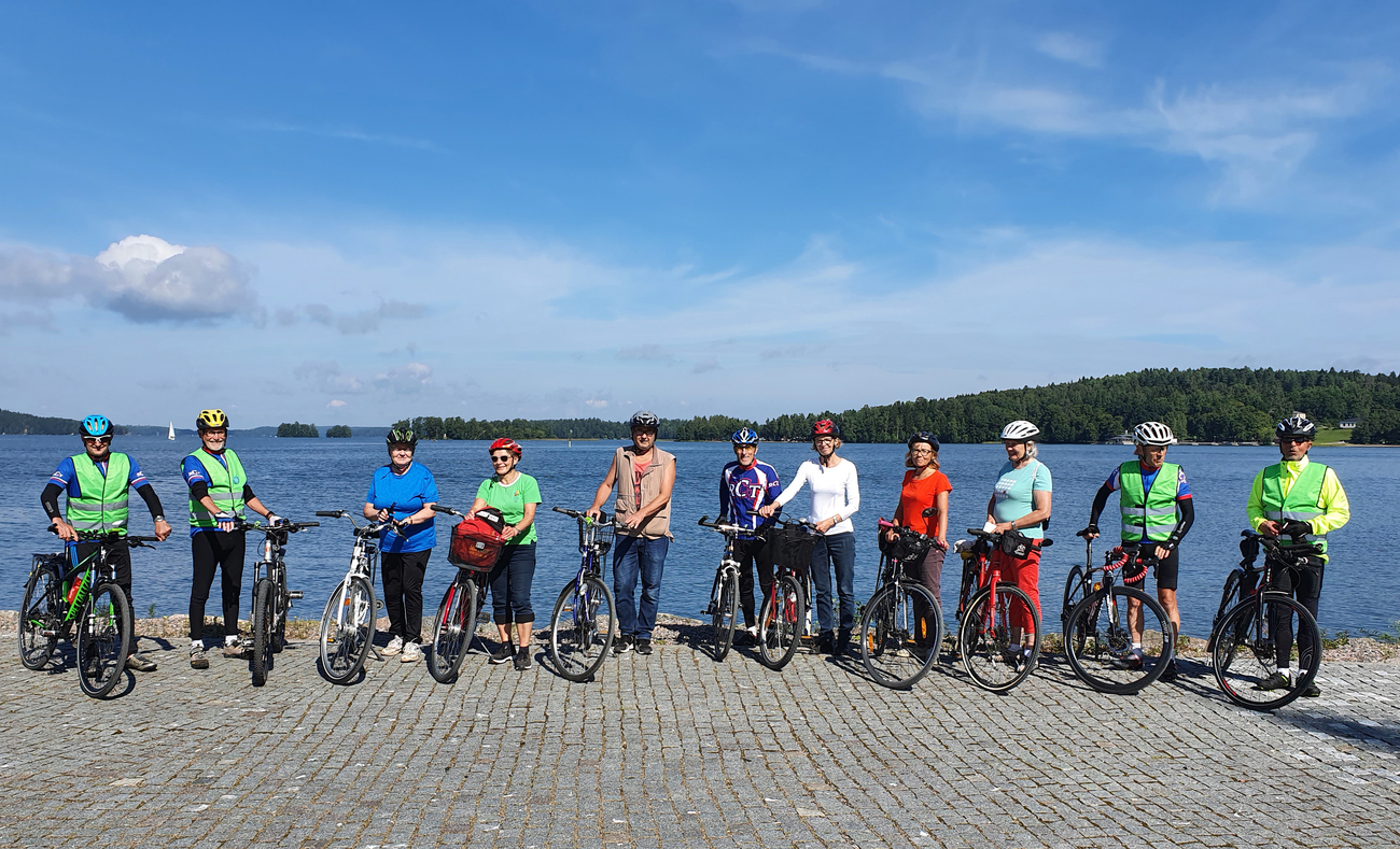 Pyöräilytietoutta senioreille -projektissa oli lauantaina 15.8. vuorossa Liikenneopastus- ja turvallisuuspäivä. Ari-Pekka Lattu Liikenneturvasta kertoi uusista liikennesäännöistä ja liikennemerkeistä. Lisäksi puhuttiin kypärän käytöstä ja pyöräilijöiden käsimerkeistä sekä harjoiteltiin pyörän hallintaa keilaradalla. Lopuksi ajettiin Hannu Vasalan johdolla Tour de Ruoriniemi, jossa kierrettiin 15 kilometrin reitti Ruoriniemen kärjen kautta takaisin Launeelle. Parhaat kiitokset erityisesti Ari-Pekalle ja kaikille muillekin osallistuneille! |